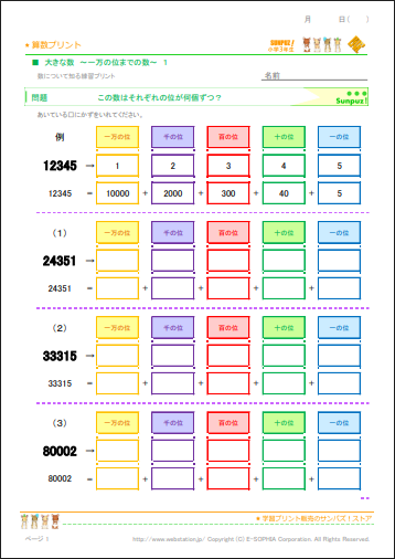 大きな数 ~この数はそれぞれの位が何個ずつ?~